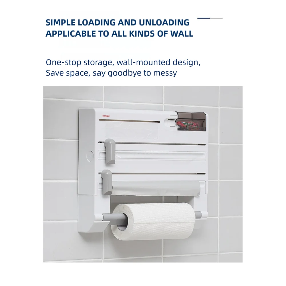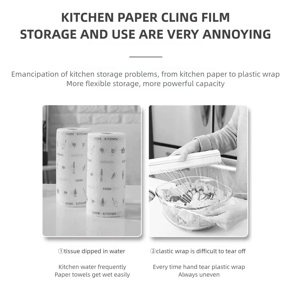 2.Función:Ideal para guardar toallas de papel, envoltura de plástico, papel de aluminio, bolsas de basura y almacenar algunos accesorios de cocina.