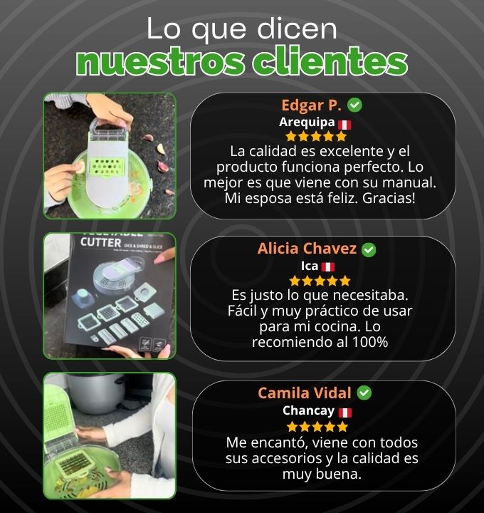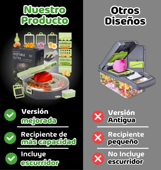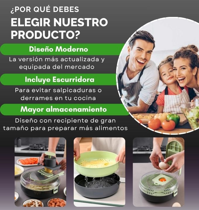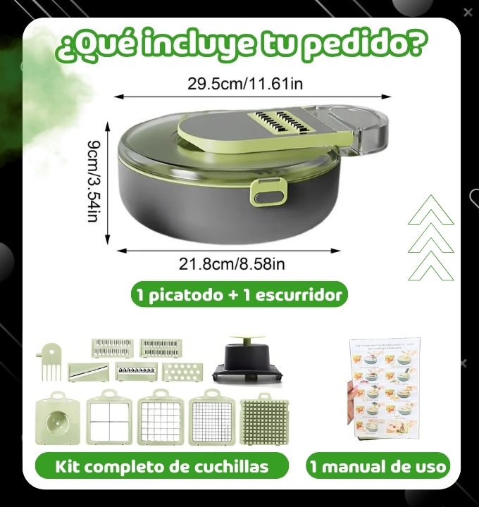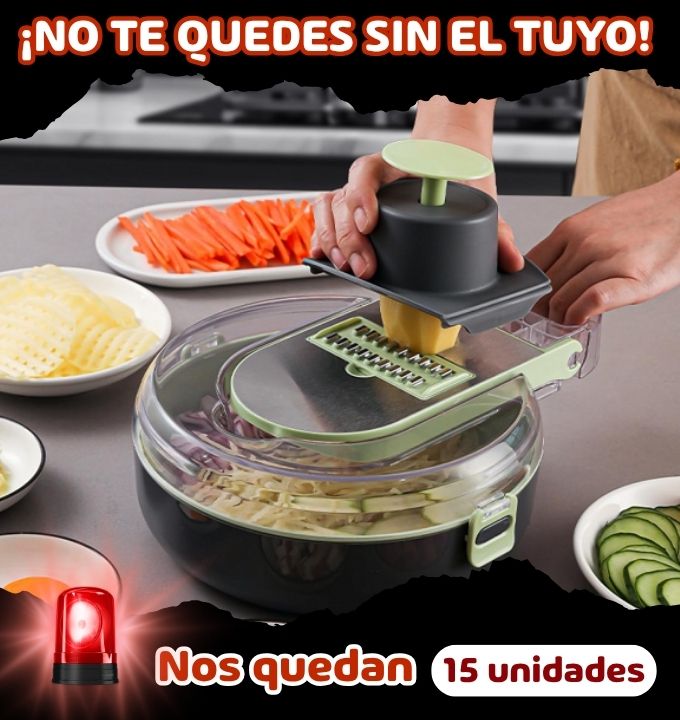 Este cortador de Verduras 9 en 1 es el más completo del mercado. Ideal para agilizar la cocina y realizar cortes como todo un profesional